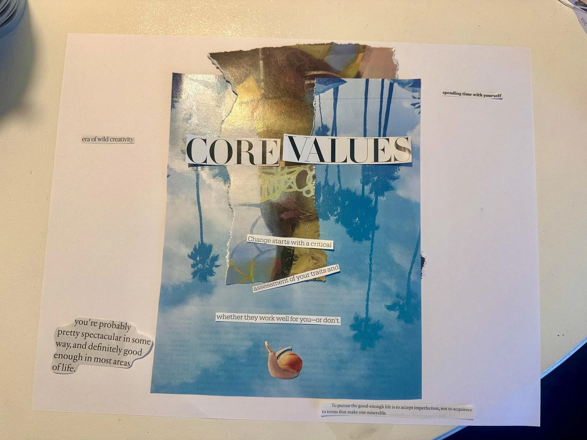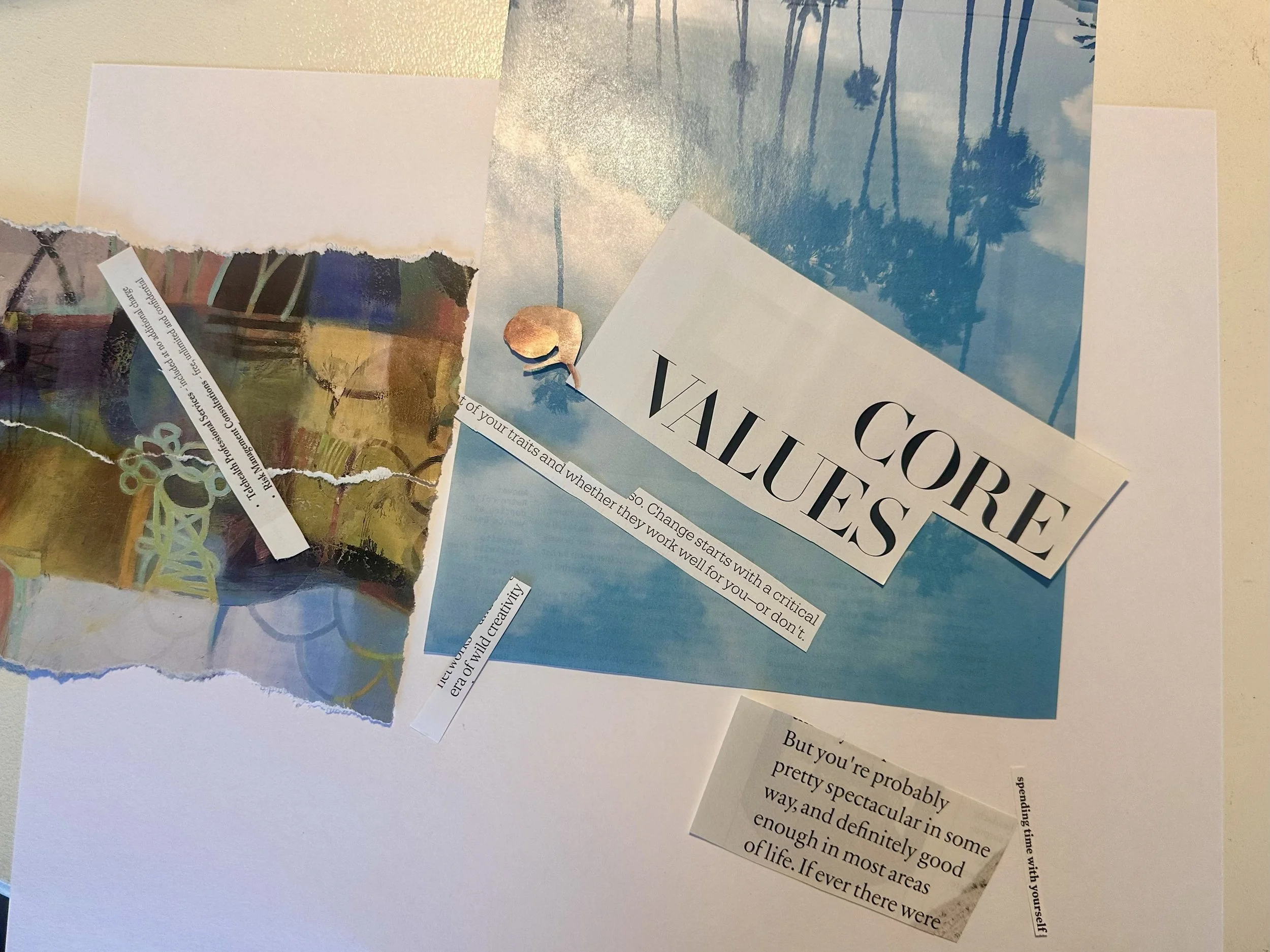 Flip through magazines or images and notice what naturally catches your attention. Try not to analyze your choices too much. If something feels comforting, inspiring, or meaningful, set it aside.